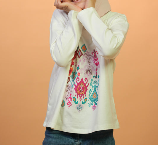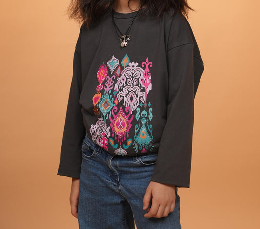 Discover our Girls’ Longsleeve Collection – crafted from 92% cotton and 8% elastane for all-day comfort and stretch. Each piece features unique embroidered motifs inspired by traditional Suzani and Anorée designs, making them stylish, breathable, and perfect for school, play, or special occasions. Available in sizes 7-8, 9-10, 10-11, and 12-13.