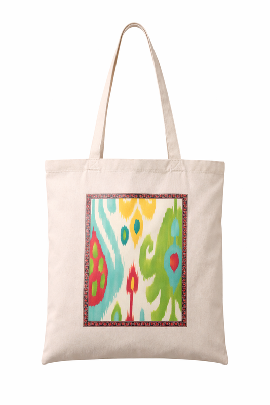 Cotton Tote Bag with Vibrant Ikat-Inspired Print