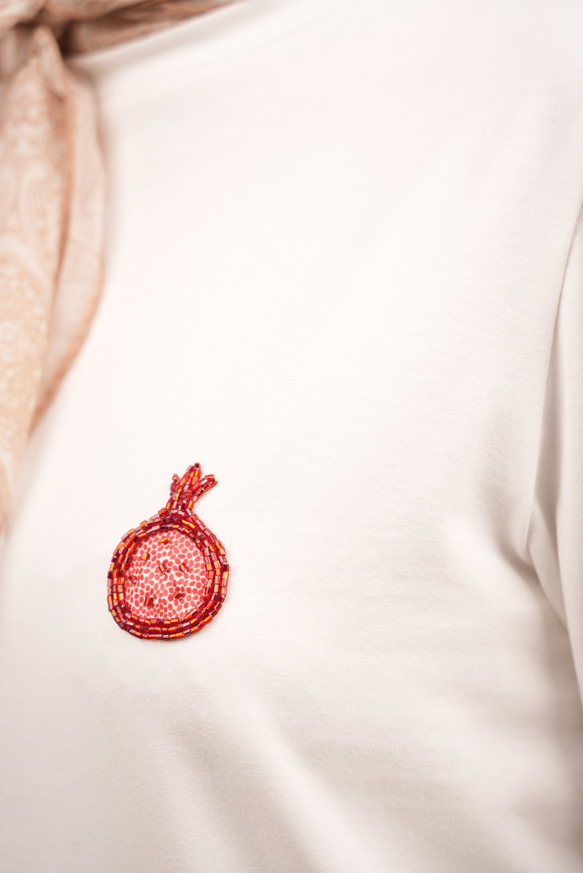 The Anorée – Ivory longsleeve is made from a soft cotton blend (92% cotton, 8% elastane) for breathability and gentle stretch. Featuring a finely embroidered pomegranate motif, it adds a subtle yet meaningful touch to your everyday wardrobe. A versatile essential, it pairs beautifully with both casual and modest outfits. Available in sizes S, M, and L.