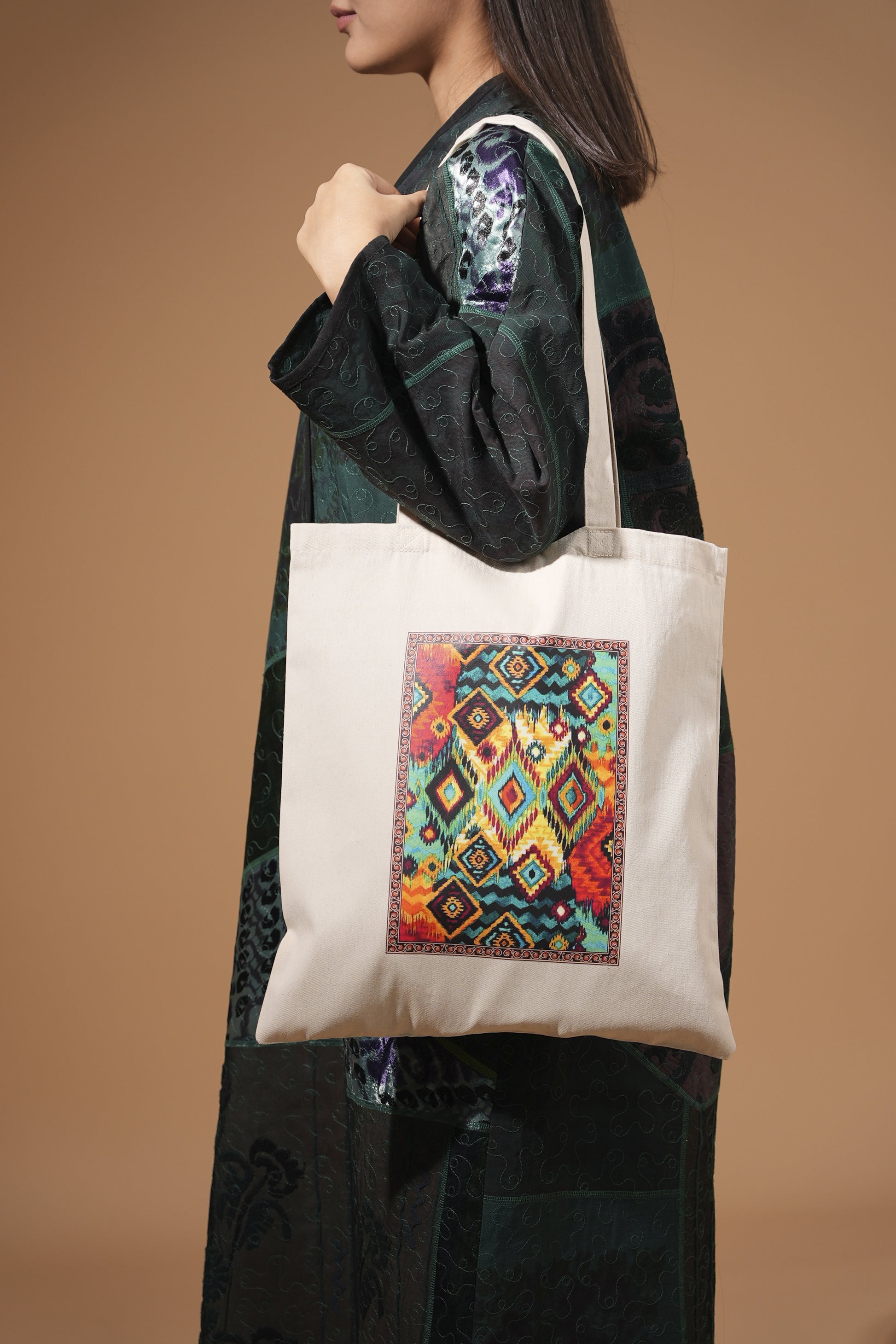 Cotton Tote Bag with Colorful Geometric Ikat Print