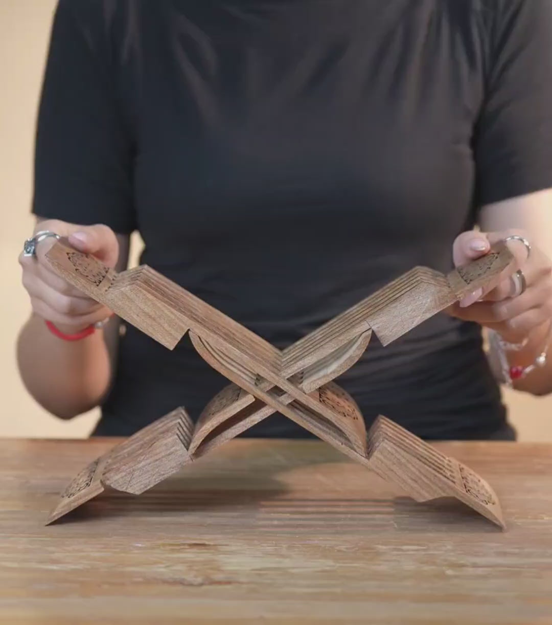 You can check our videos to see how the transformation happens. Its foldable structure makes it easy to store or carry, making this bookstand a timeless piece that blends functionality with artistry.