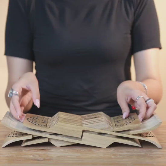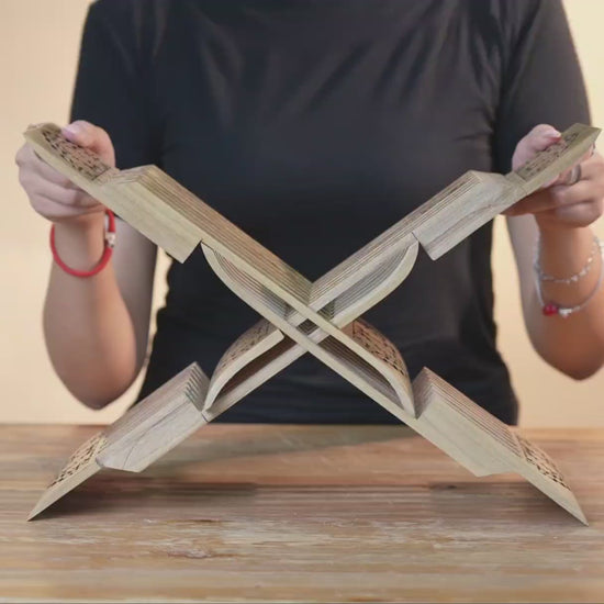 This versatile stand transforms into 4 different positions of varying height, allowing you to adjust the reading angle to your comfort. You can watch our videos to see how the transformation works. Its foldable structure makes it easy to store and carry, while its durable wooden build ensures lasting beauty and functionality for your home.