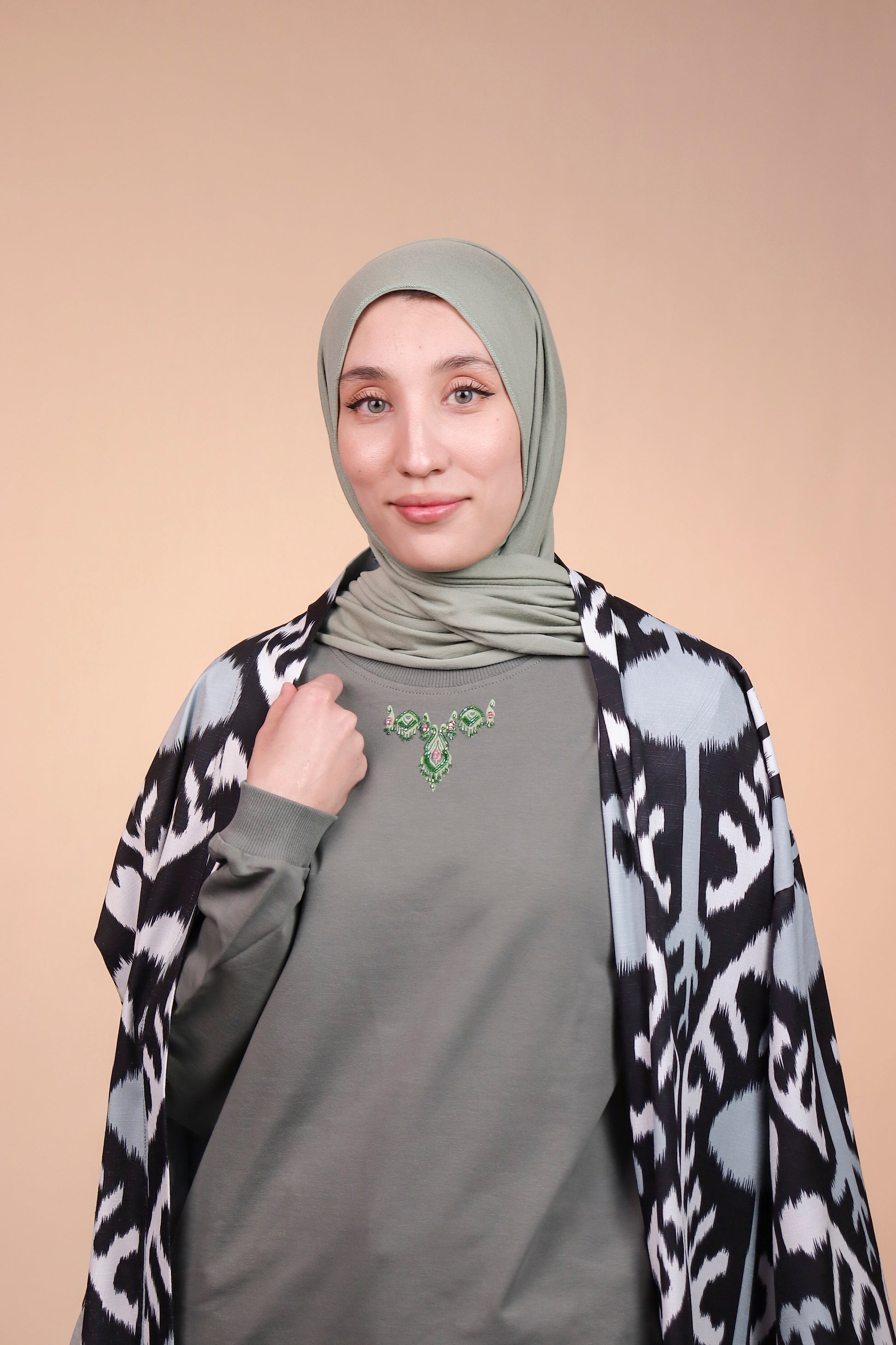 Ikat Festive - Lush Charm - Warm Olive - Hand-Beaded