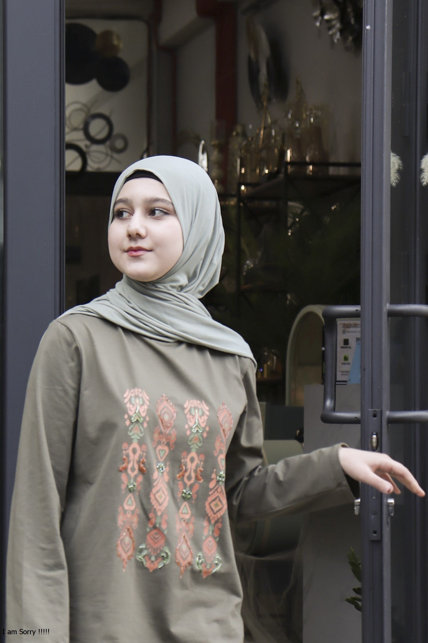 The relaxed silhouette and long sleeves ensure both comfort and modesty, while the rich olive shade makes it a versatile piece for any season. Pair it with trousers or jeans for an effortlessly chic look that blends heritage craftsmanship with modern sophistication.