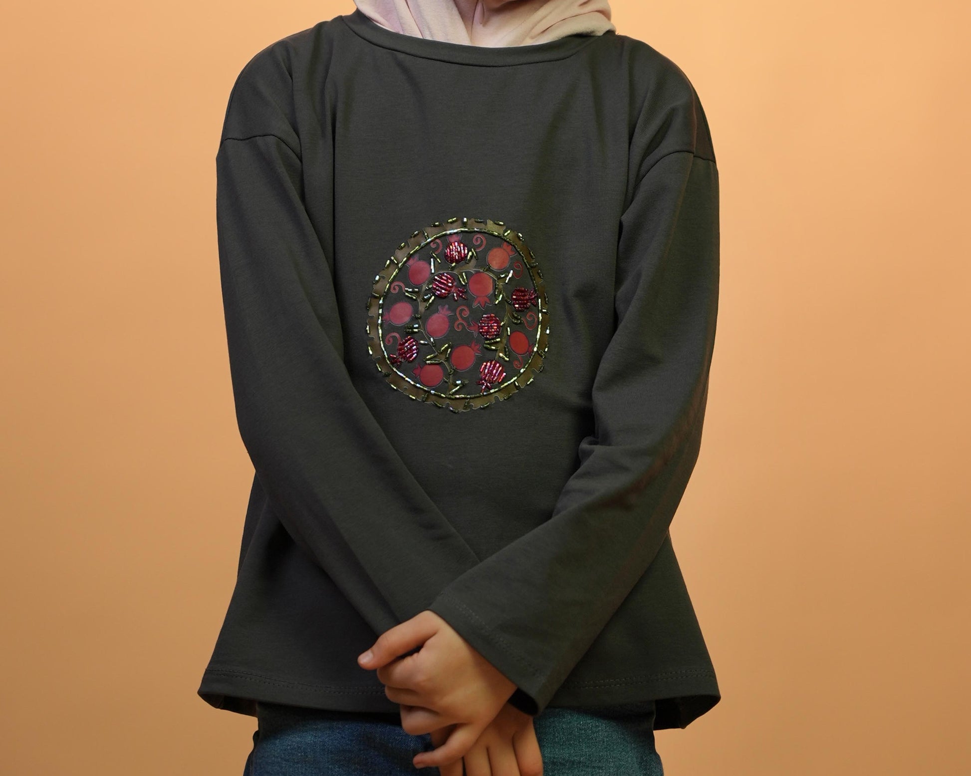 The Suzani Ring - Charcoal Girls’ Longsleeve blends timeless tradition with everyday comfort. Crafted from 92% cotton and 8% elastane, this soft and breathable top ensures freedom of movement while keeping its elegant shape. The charcoal base is accented with a striking embroidered Suzani ring motif in rich red and green tones, adding a cultural touch of artistry. Perfect for school days, family outings, or festive gatherings, this versatile longsleeve gives girls a stylish way to stay comfortable and unique. Please note that all colour fabrics have slightly lighter thickness compared to white fabric.